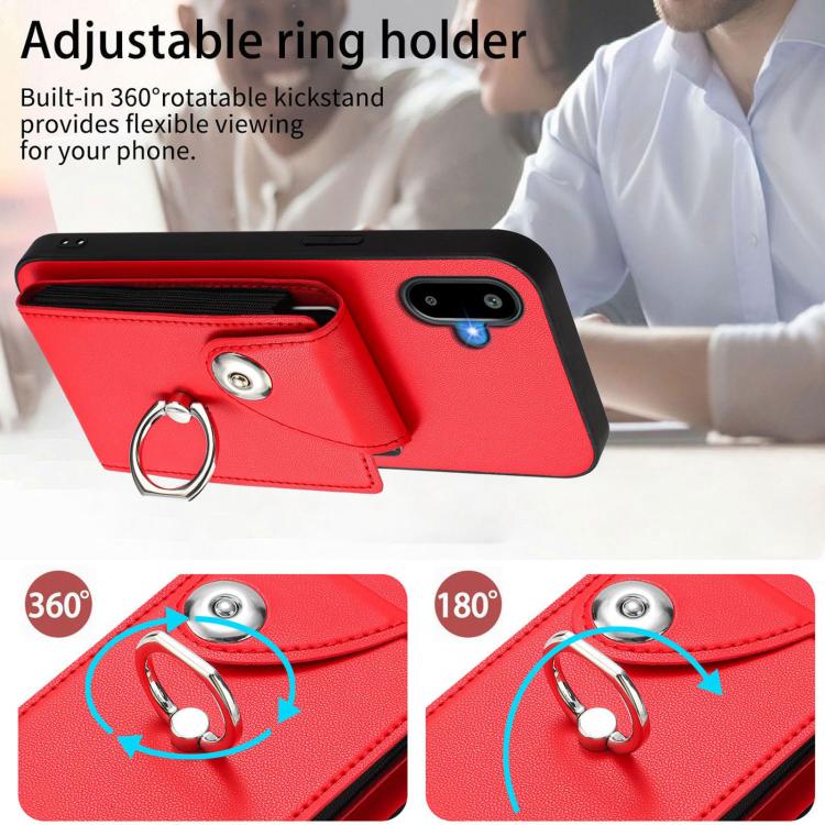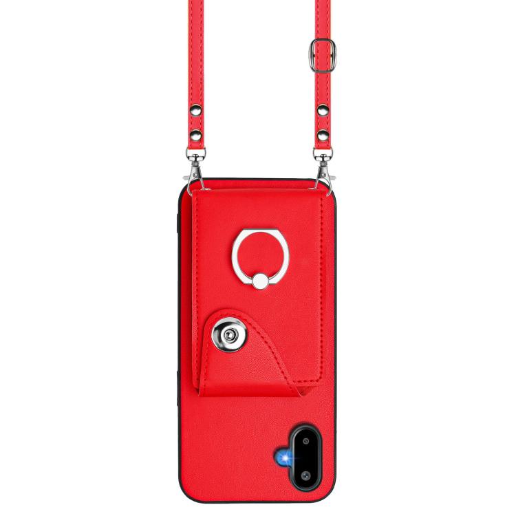 Funda para Samsung Galaxy F06 5G / M06 5G con tarjetero, anilla y cordón largo (roja)