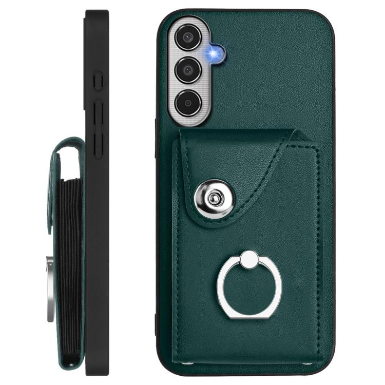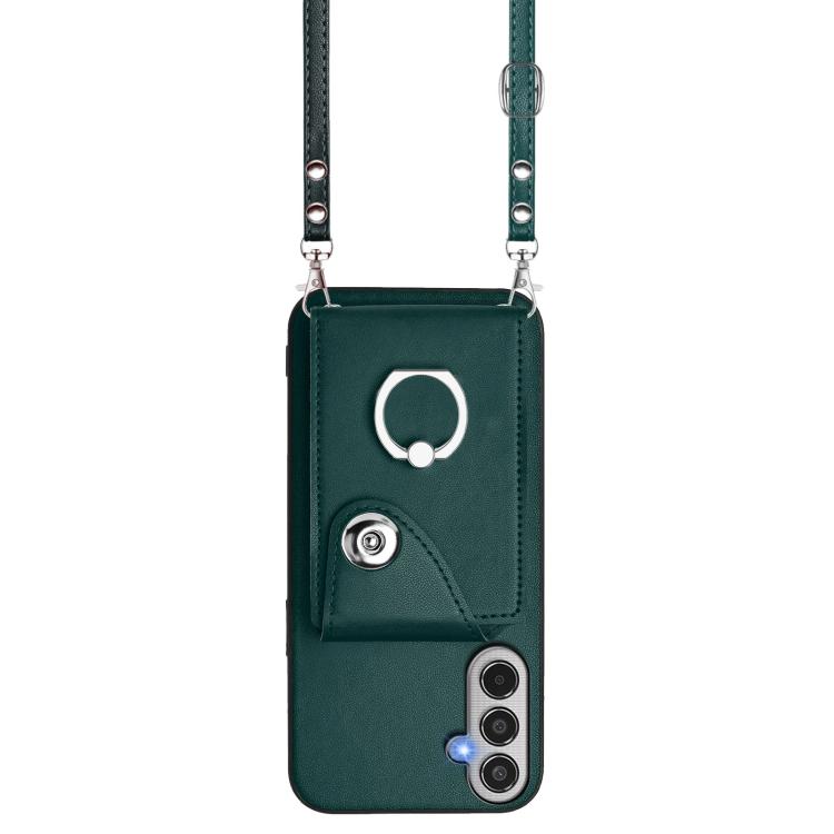 Funda para Samsung Galaxy M35 5G con tarjetero, anilla y cordón largo (verde)