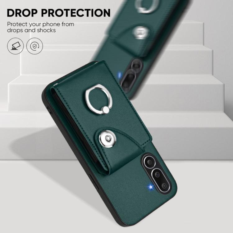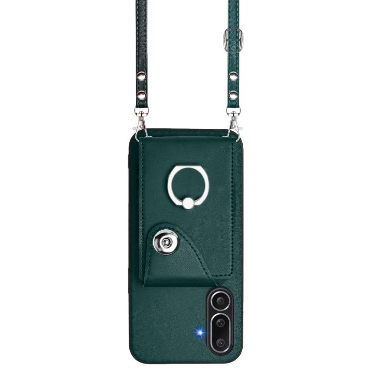 Funda para Samsung Galaxy M56 5G con tarjetero, anilla y cordón largo (verde)