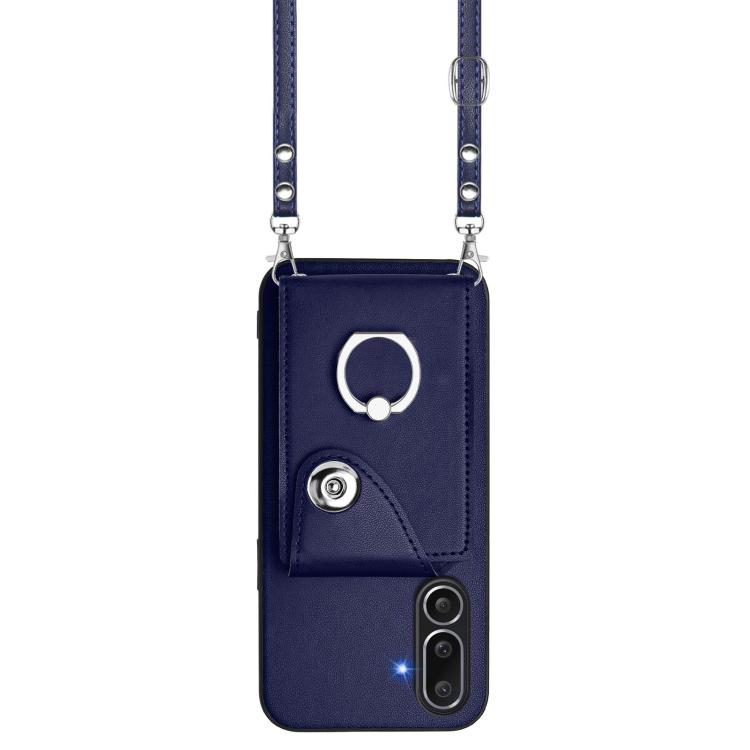 Funda para Samsung Galaxy M56 5G con tarjetero, anillo y cordón largo (azul)