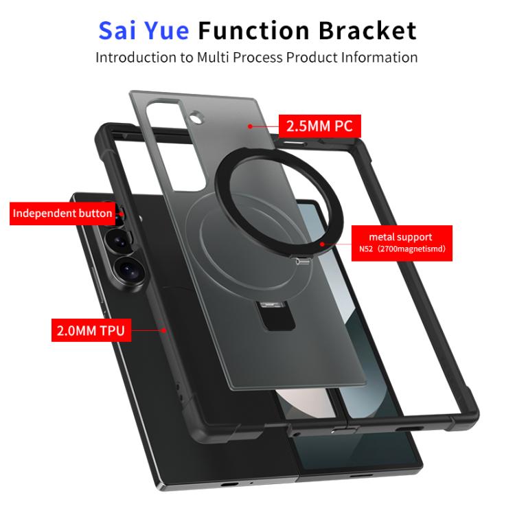 Funda para Samsung Galaxy Z Fold4 con soporte MagSafe de cuatro esquinas a prueba de golpes (negro)