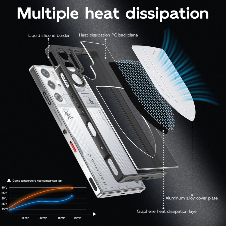 Funda para Teléfono 3 en 1 ZTE Nubia Red Magic 9 Pro/9S Pro con Refrigeración (Plateada)
