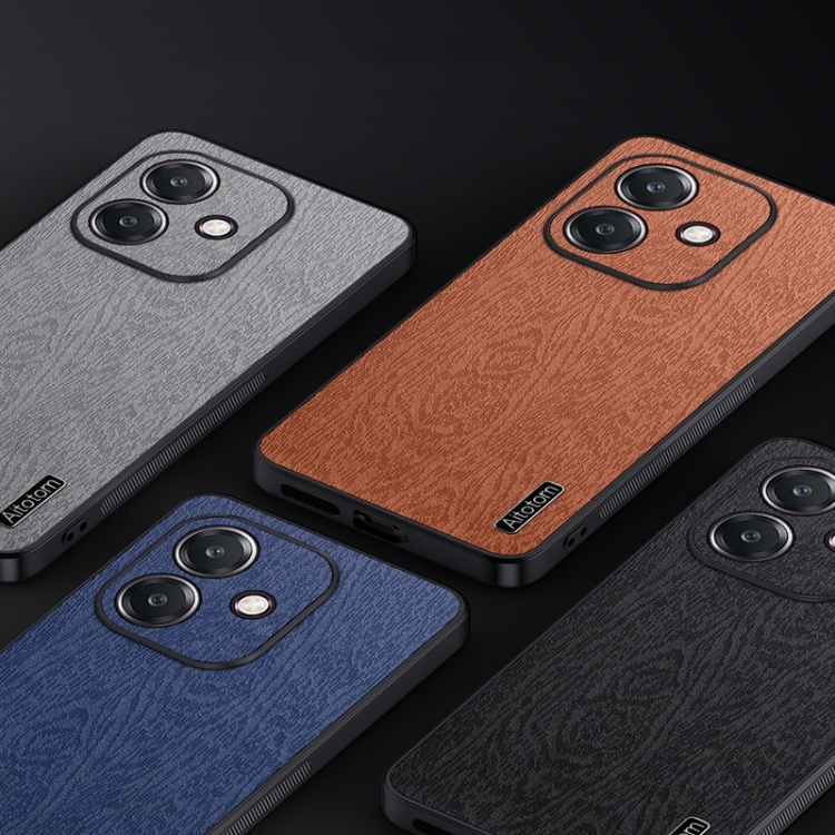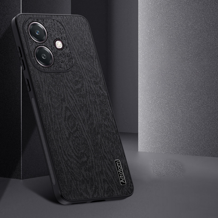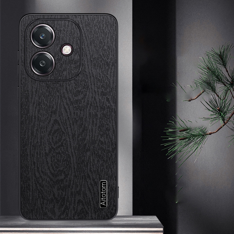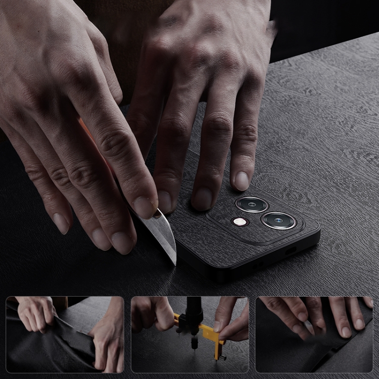 Funda de Cuero con Textura de Corteza de Árbol para Oppo A3X Global, a Prueba de Golpes (Negra)