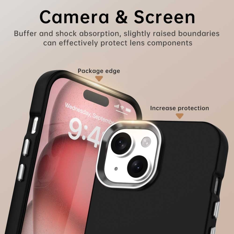Funda para Teléfono iPhone 15 Serie Colorida a Prueba de Golpes (Negra)