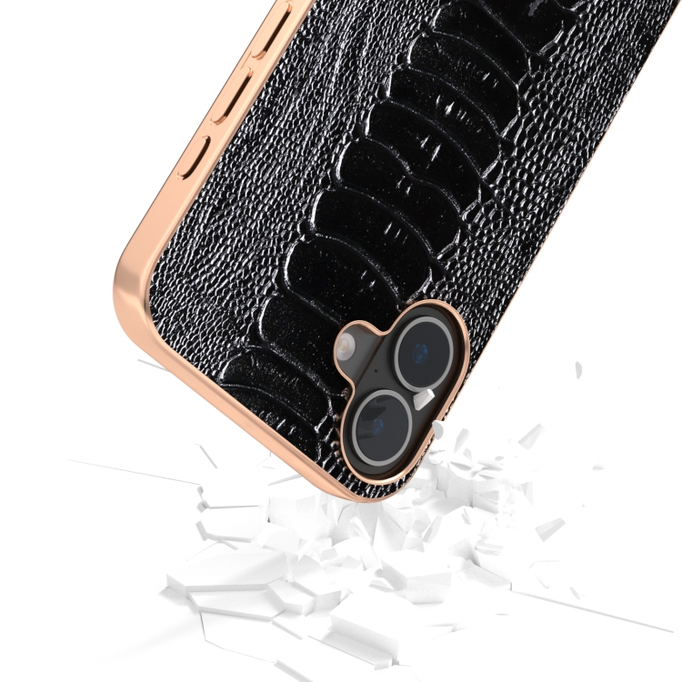Funda para Teléfono Abeel Serie Weilai Cuero Genuino con Marco Galvanizado para iPhone 16 Plus (Negro)