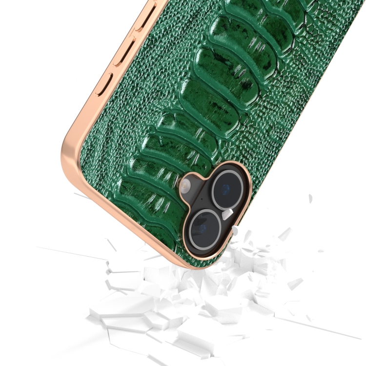 Funda para Teléfono Abeel Serie Weilai Cuero Genuino Marco Galvanizado iPhone 16 Plus (Verde)