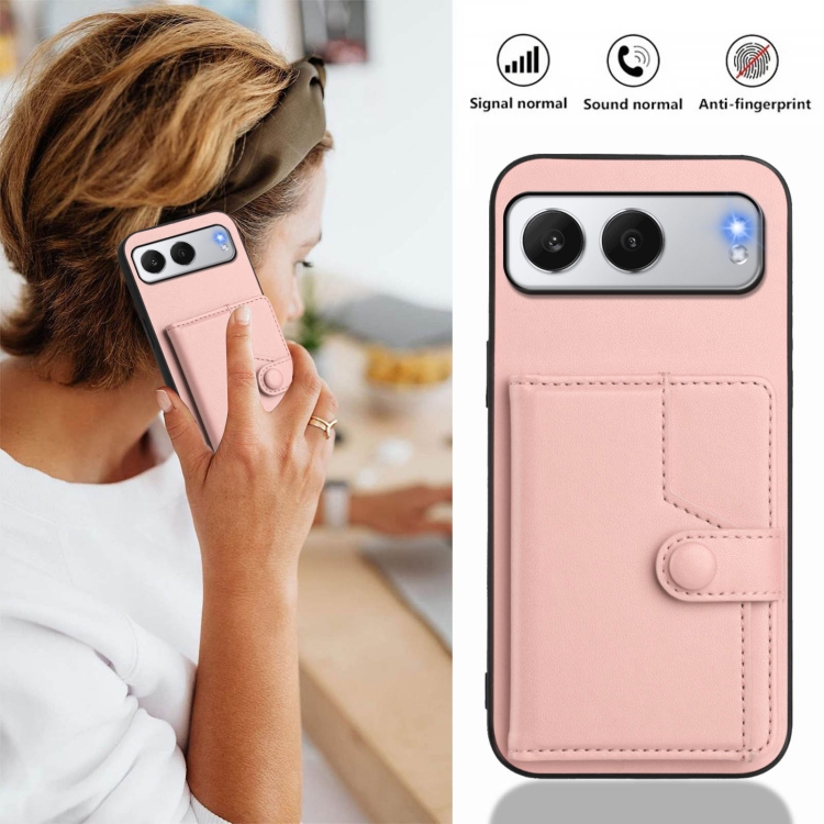 Funda Antirrobo para OnePlus Nord con RFID y Tarjetero 4 Botones (Rosa)