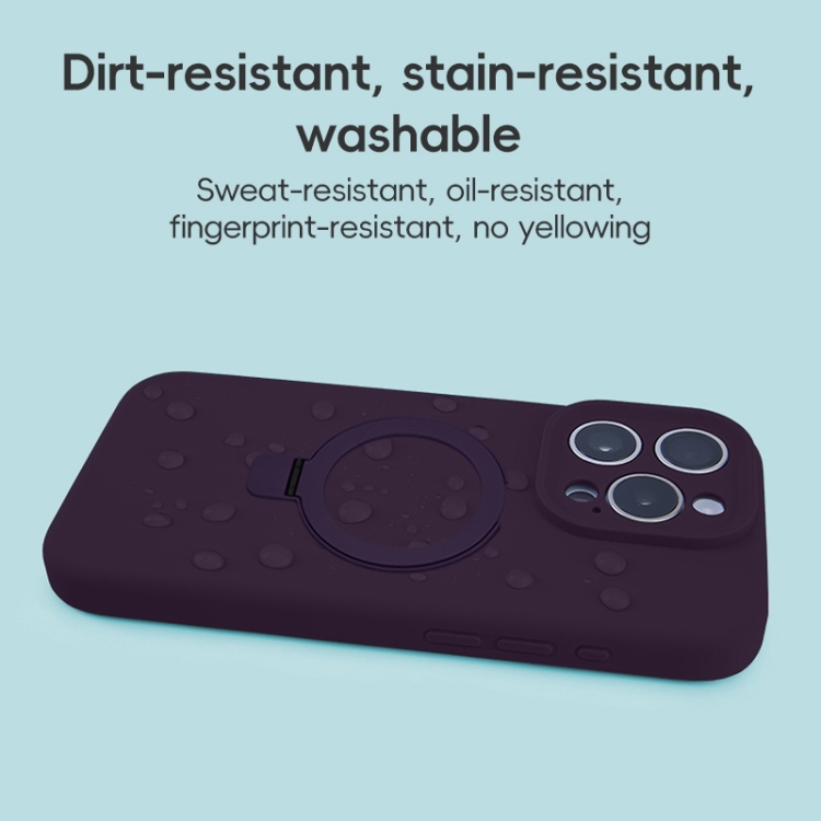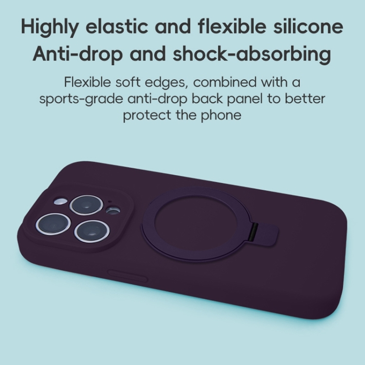 Funda para Teléfono con Anillo de Metal Magsafe de Silicona Líquida para iPhone 16 (Morado Oscuro)