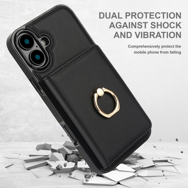 Funda para Teléfono con Anillo para Tarjeta Antirrobo Rfid para iPhone 16 Plus (Negro)