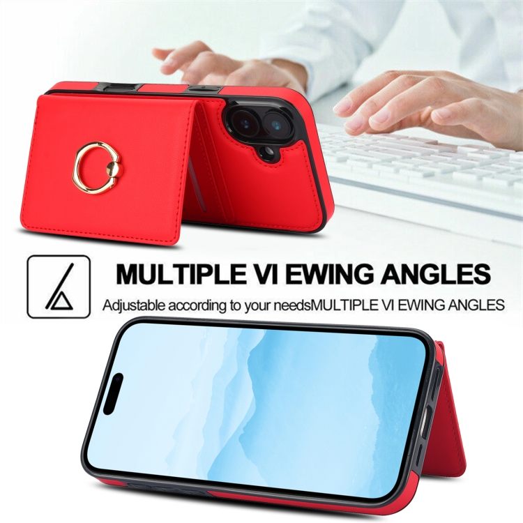 Funda para teléfono con anillo para tarjeta antirrobo Rfid iPhone 16 Plus (Rojo)