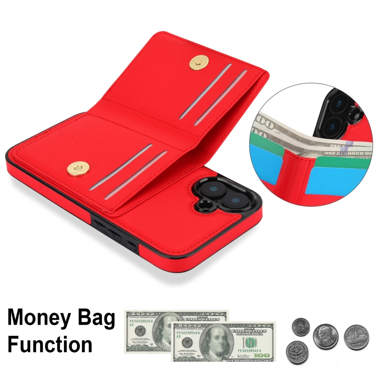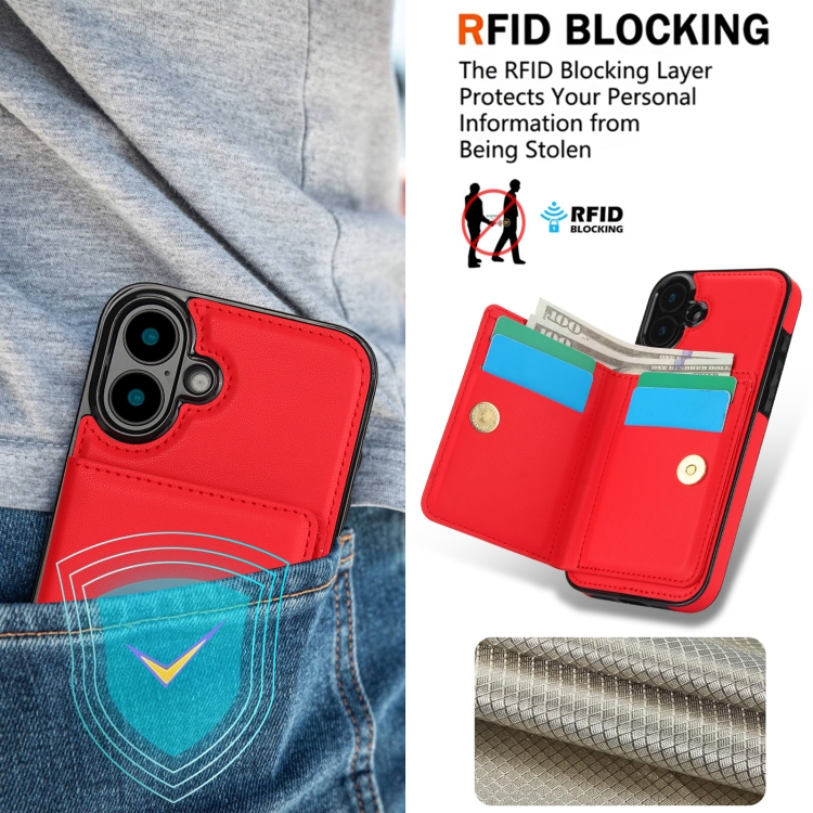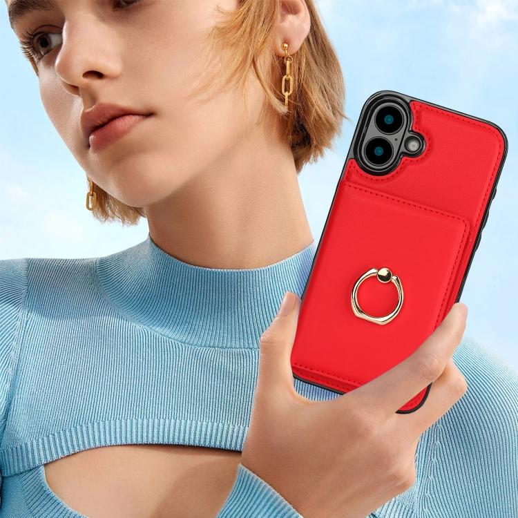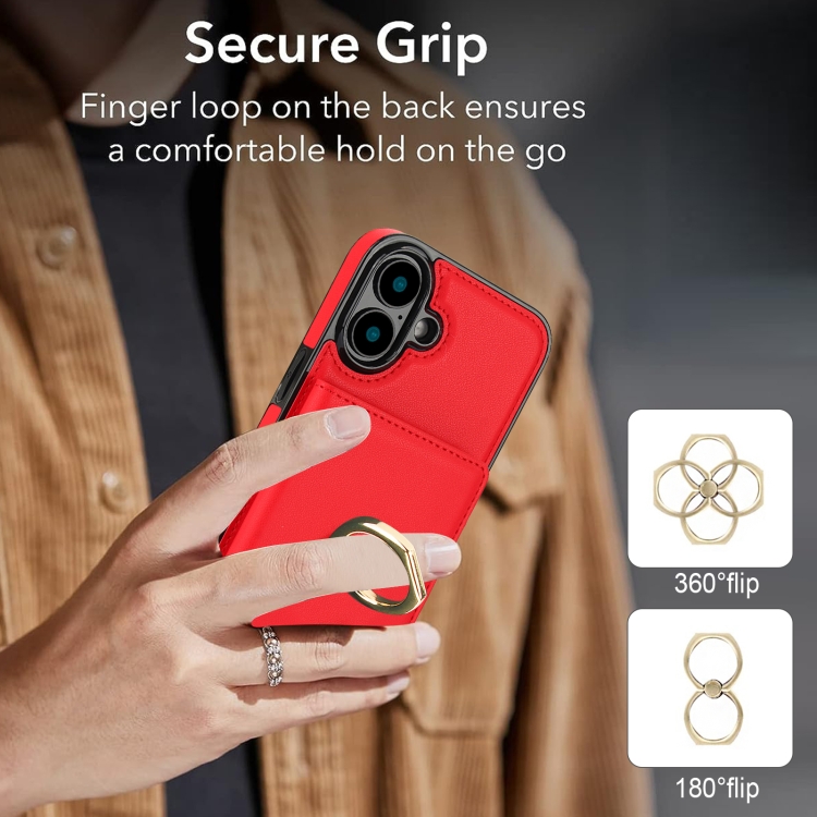Funda para Teléfono con Anillo para Tarjeta Antirrobo Rfid para iPhone 16 (Rojo)