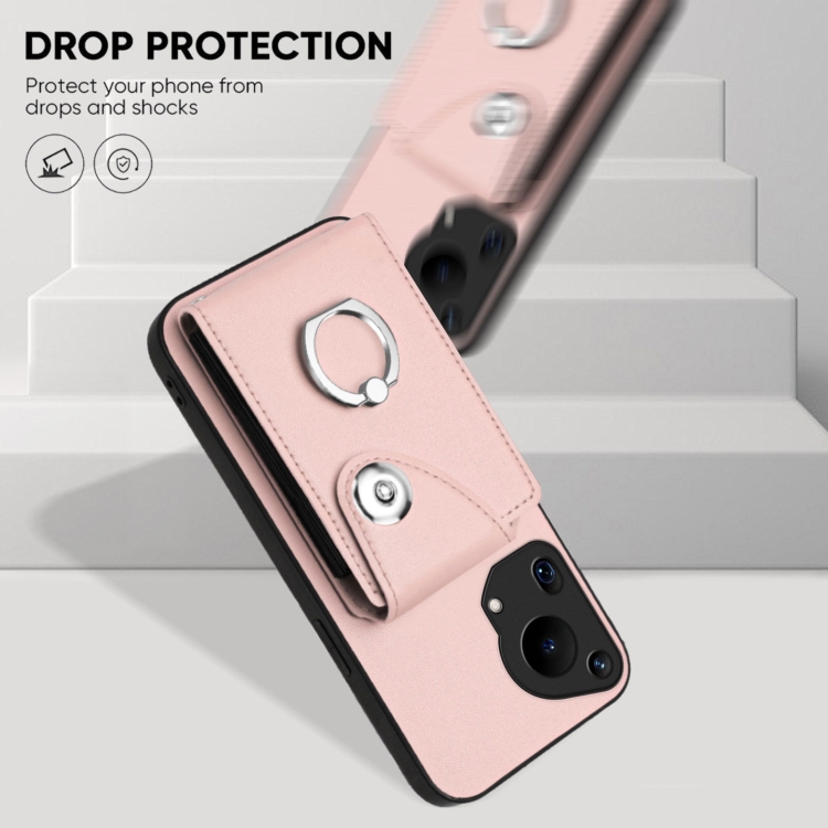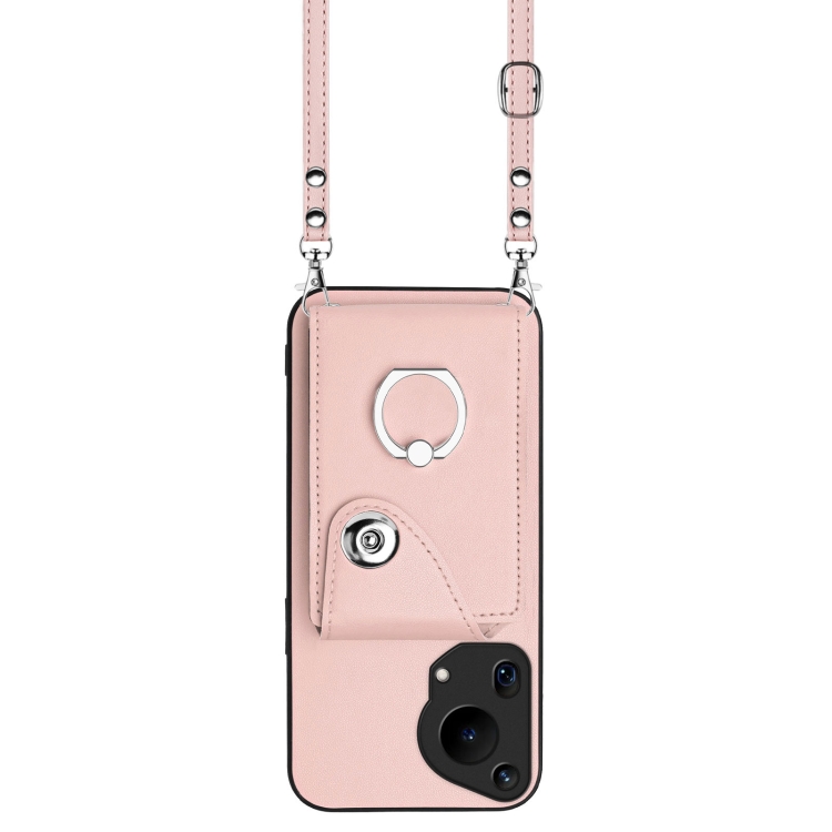 - 1x Funda para Teléfono Huawei Pura 70 Ultra con Aro, Tarjetero y Cordón Largo (Rosa)