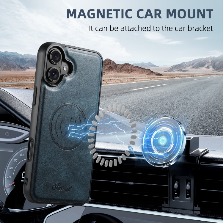 Funda para Teléfono Suteni H17 Oil Eax con Billetera Desmontable Magsafe para iPhone 16 Plus (Azul)