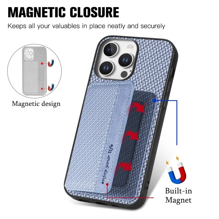 Funda para Teléfono Fibra de Carbono con Bloqueo RFID y Billetera para iPhone 16 Pro (Azul)