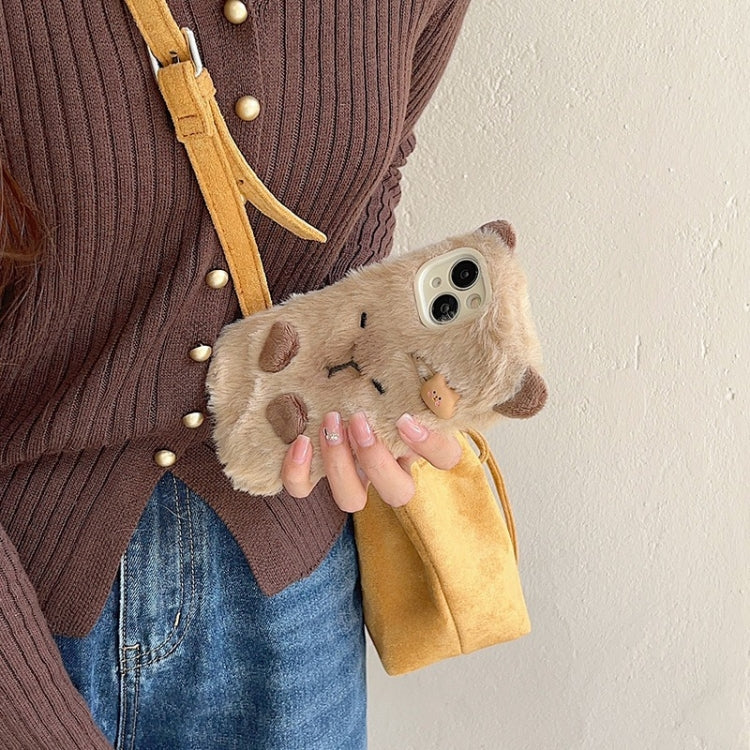 Funda para teléfono iPhone 16 Pro cobertura total 3D peluche Capibara (Marrón)