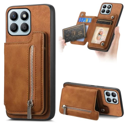 Funda para Teléfono con Cremallera Magsafe Retro para Honor X8B (Marrón)