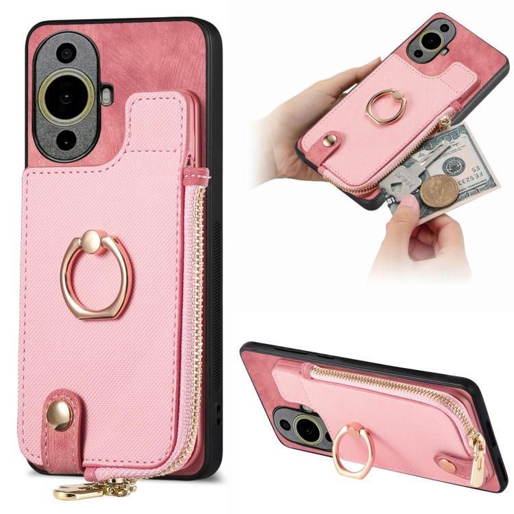 Funda para Huawei Nova 11 Pro con Cremallera Vertical y Anillo de Cuero Cruzado (Rosa)