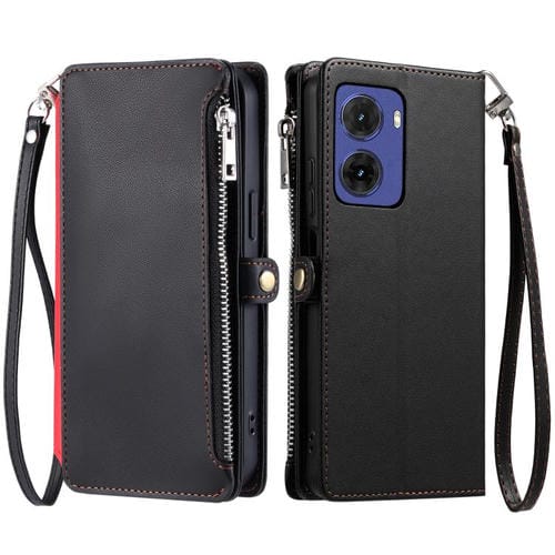 Funda para Teléfono Motorola Moto G05 con Cremallera y Ranura para Tarjetas (Negro)