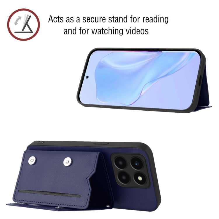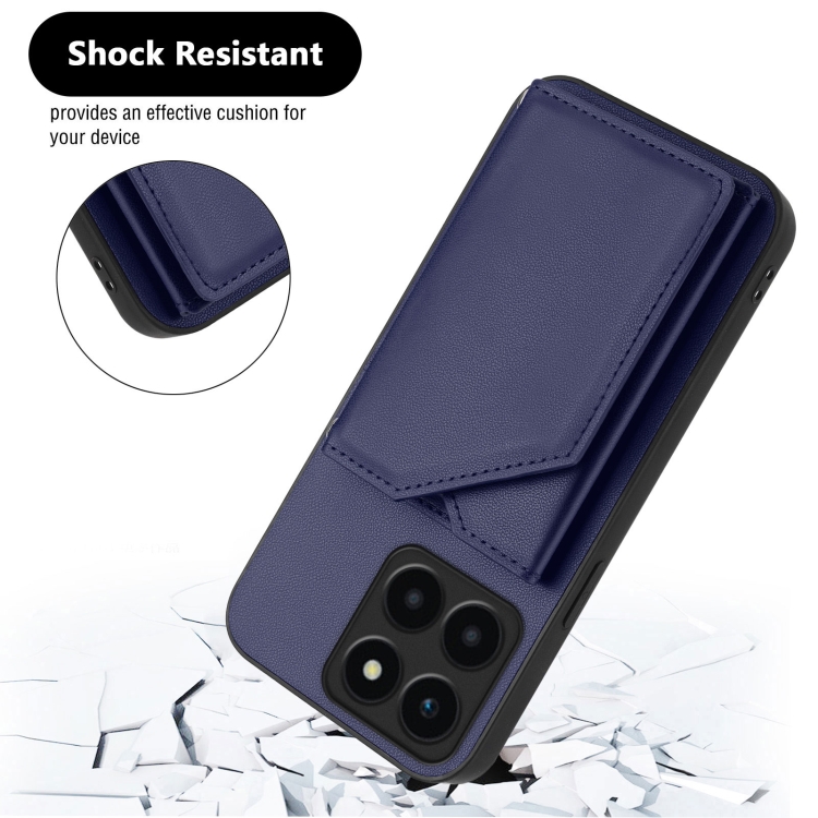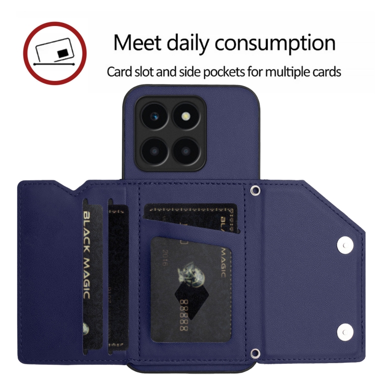 Funda para Teléfono Honor X6A con 4 Ranuras para Tarjetas y Correa de Muñeca (Azul)