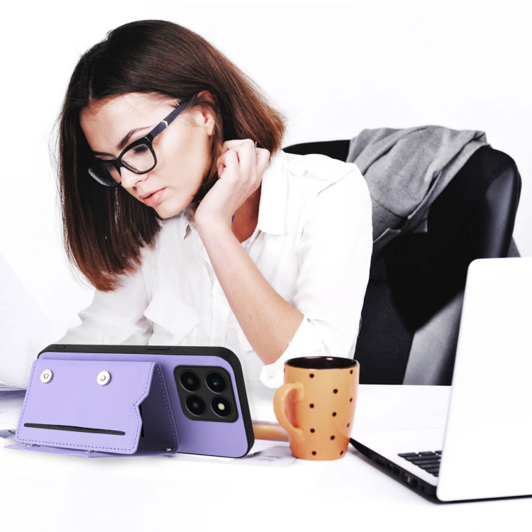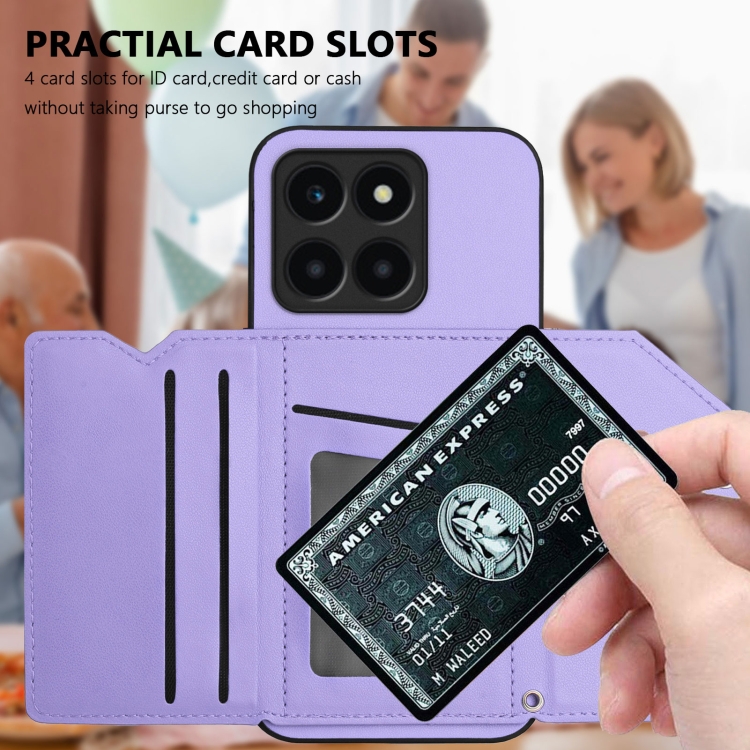 Funda para Teléfono Honor X6A con 4 Ranuras para Tarjetas y Correa (Morado)