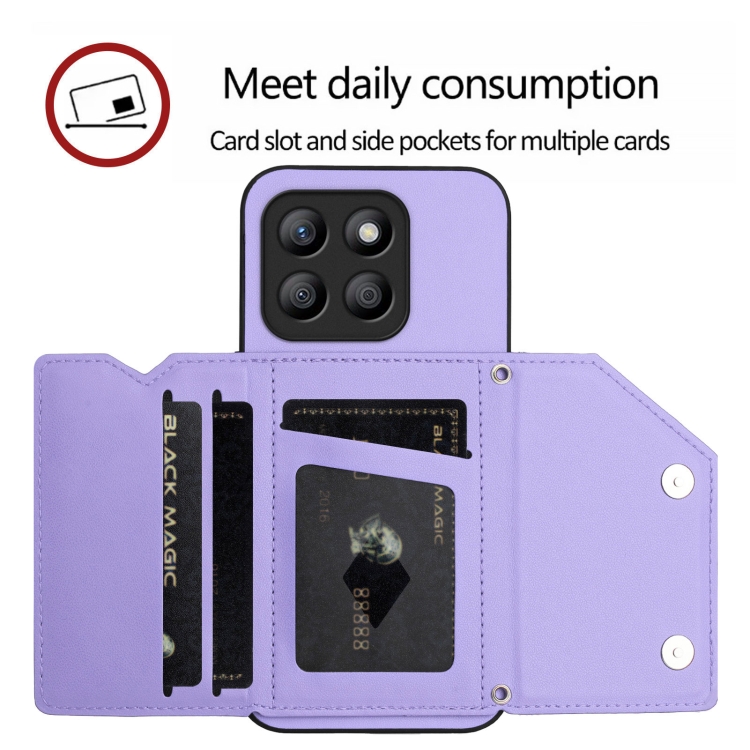 Funda para Teléfono Honor X8B con 4 Ranuras para Tarjetas y Correa (Morado)