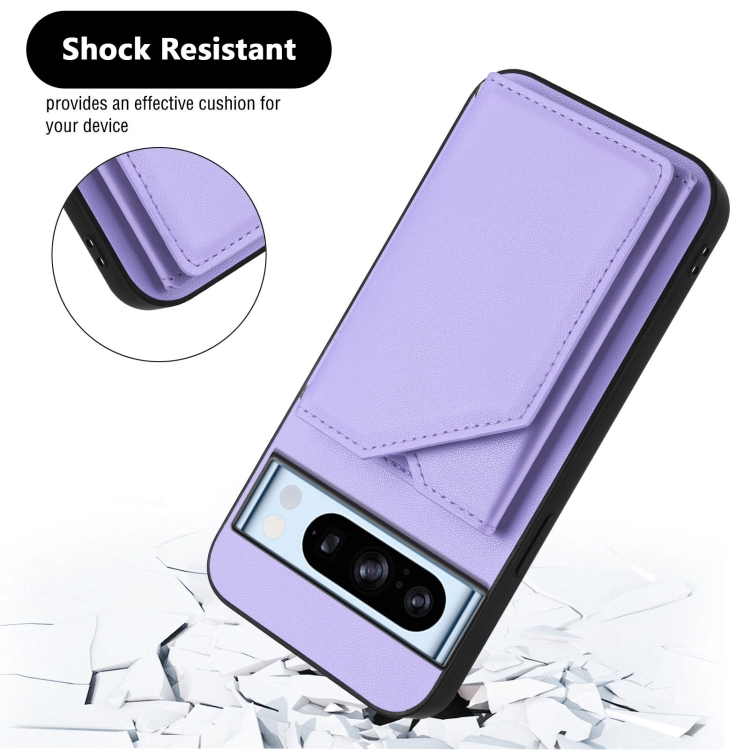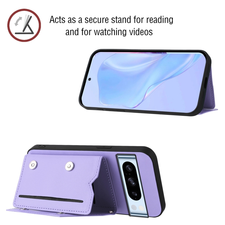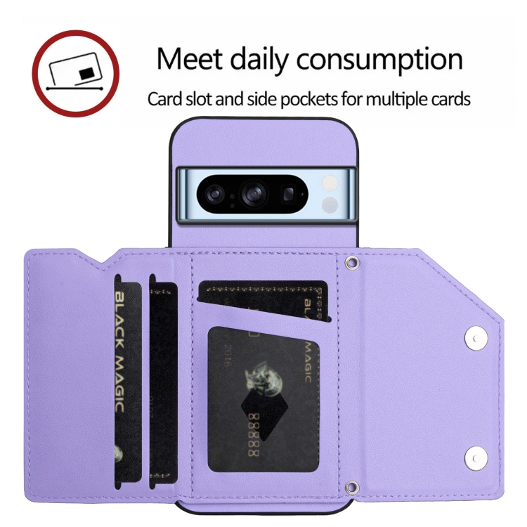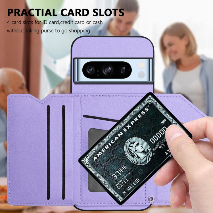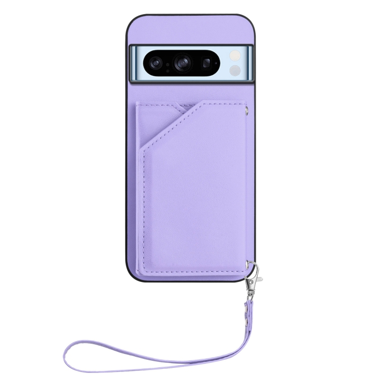 Funda para Teléfono Google Pixel 8 Pro Skin Feel con 4 Ranuras para Tarjetas y Correa para Muñeca (Morado)