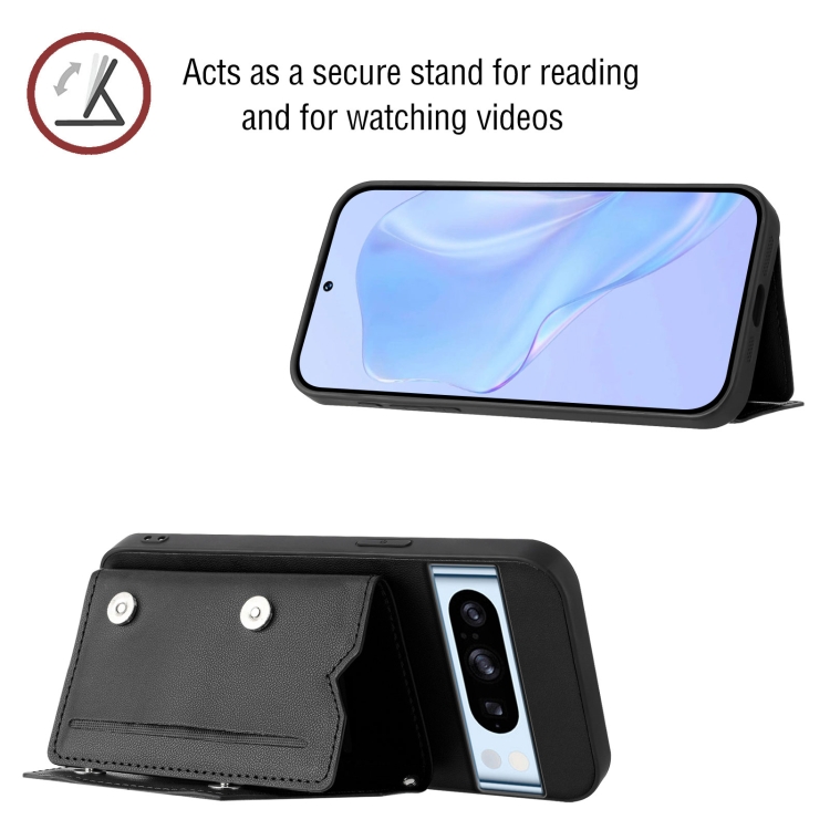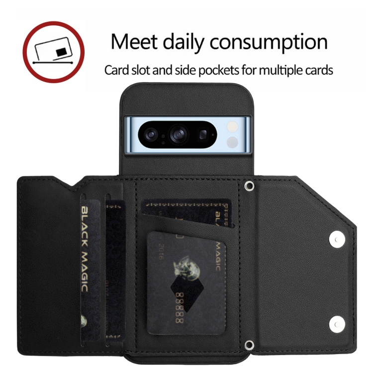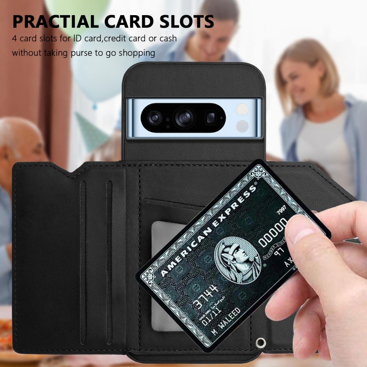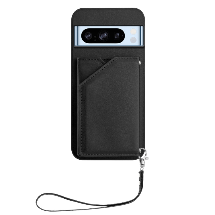 Funda para Teléfono Google Pixel 8 Pro Skin Feel con 4 Ranuras para Tarjetas y Correa para Muñeca (Negra)