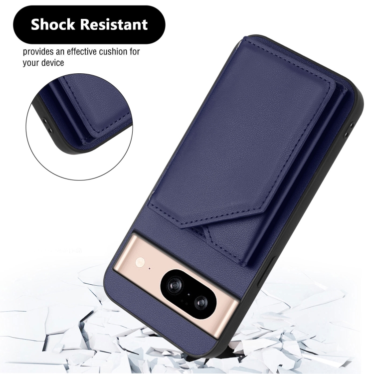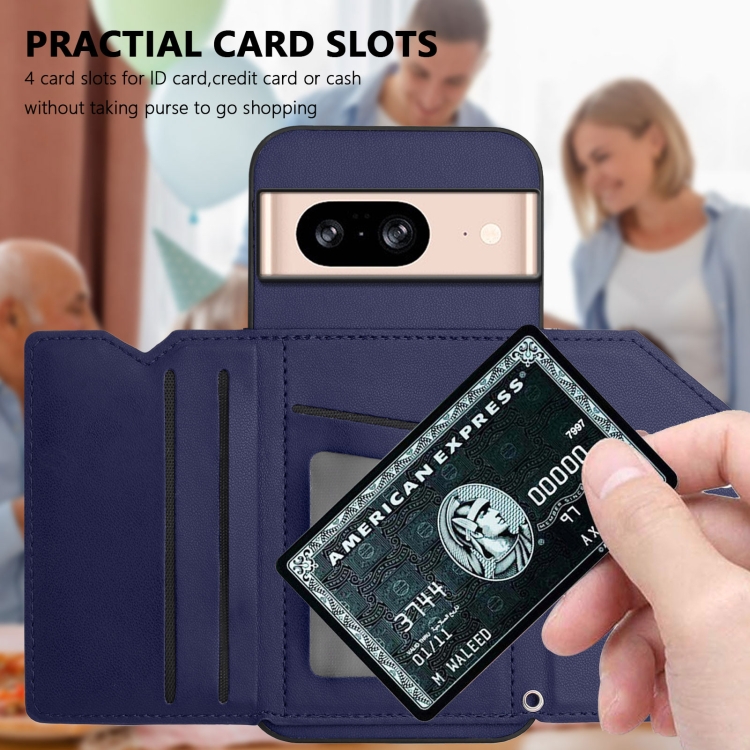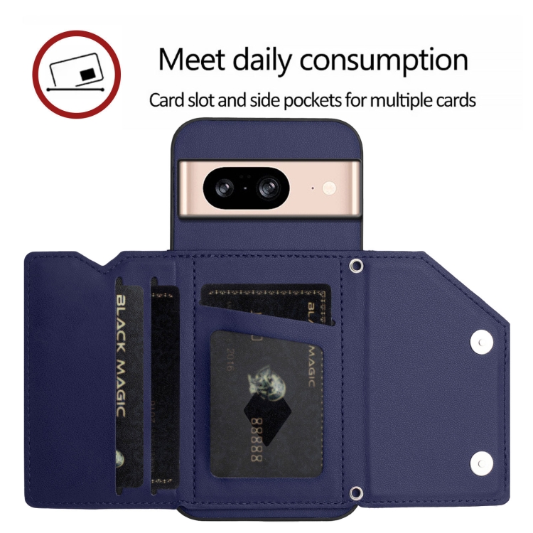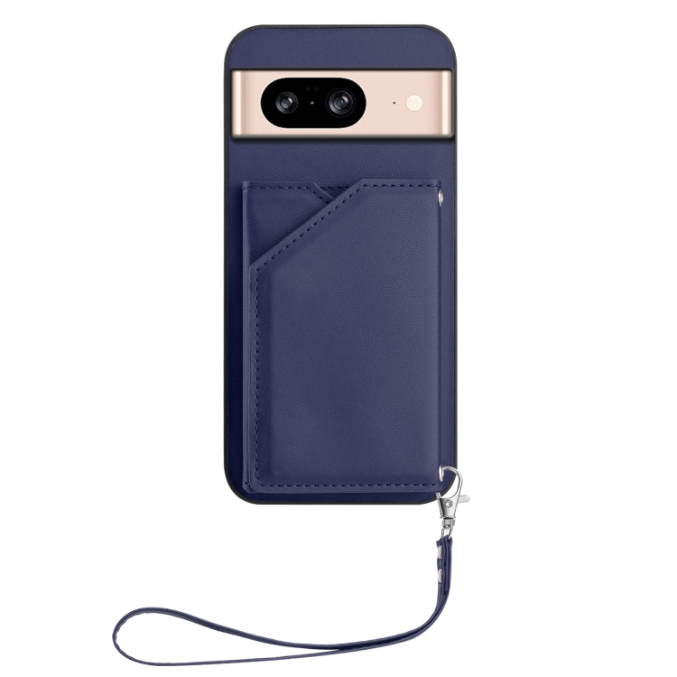 Funda para Google Pixel 8 Skin Feel con 4 Ranuras para Tarjetas y Correa para Muñeca (Azul)