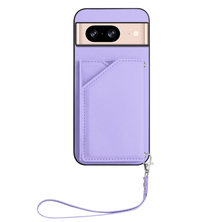 Funda para Google Pixel 8 Skin Feel con 4 Ranuras para Tarjetas y Correa para Muñeca (Morado)