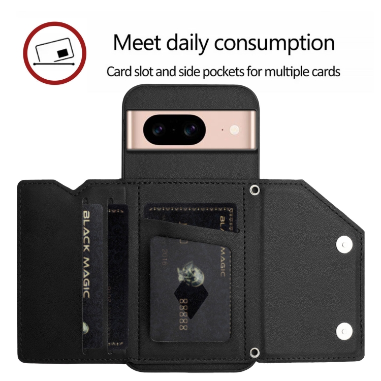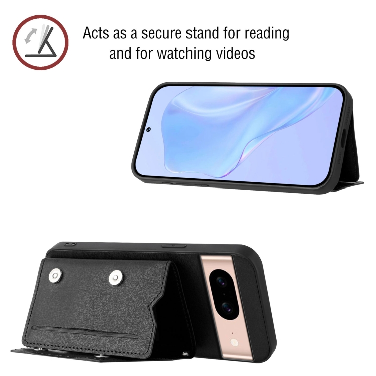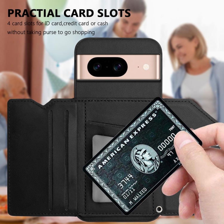 Funda para Teléfono Google Pixel 8A Skin Feel con 4 Ranuras para Tarjetas y Correa (Negra)