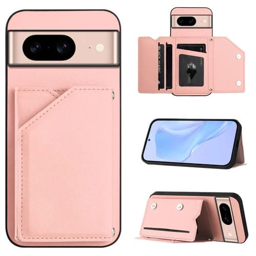 Funda para Teléfono Google Pixel 8A Skin Feel con 4 Ranuras para Tarjetas y Correa para Muñeca (Rosa)