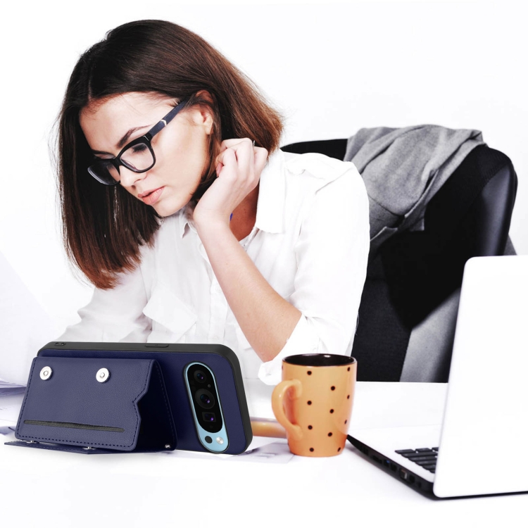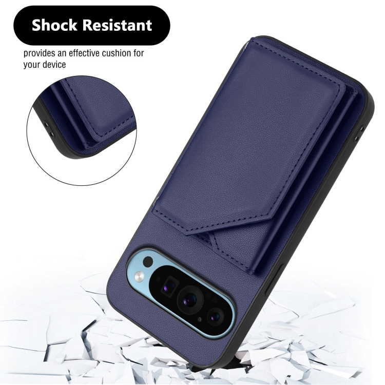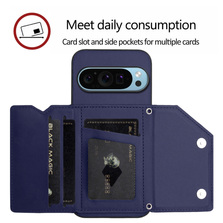 Funda para Teléfono Google Pixel 9 Pro Skin Feel con 4 Ranuras para Tarjetas y Correa para Muñeca (Azul)
