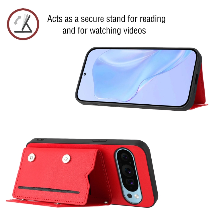 Funda para Teléfono Google Pixel 9 Pro Skin Feel con 4 Ranuras y Correa (Rojo)