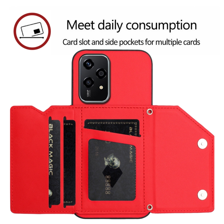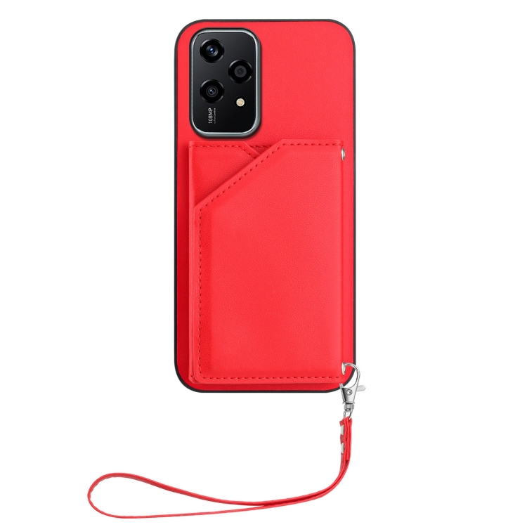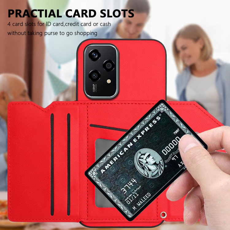Funda para Honor 200 Lite 5G Skin Feel con 4 Ranuras para Tarjetas y Correa (Rojo)