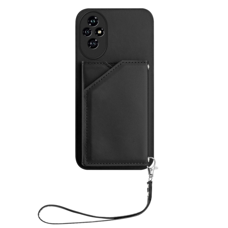 Funda para Teléfono Honor 200 Pro Skin Feel con 4 Ranuras para Tarjetas y Correa (Negra)
