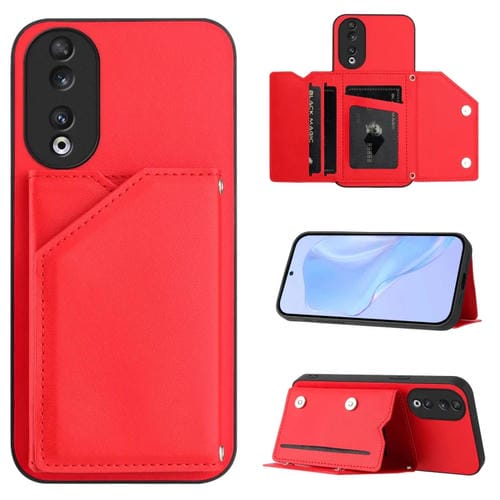 Funda para Honor 90 Skin Feel con 4 Ranuras para Tarjetas y Correa para Muñeca (Rojo)