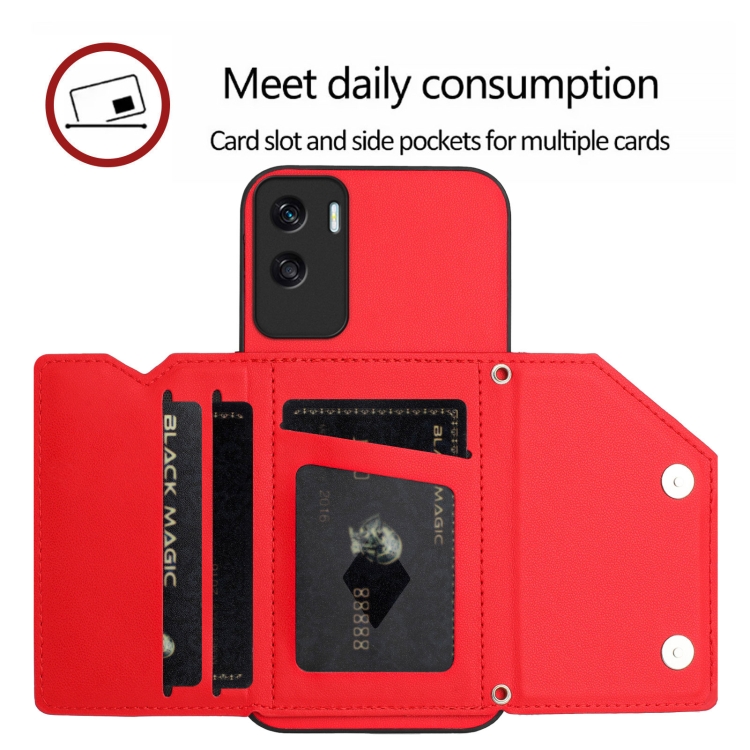 Funda para Teléfono Honor X50I/90 Lite con 4 Ranuras para Tarjetas y Correa (Rojo)