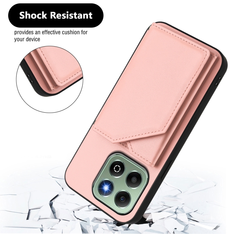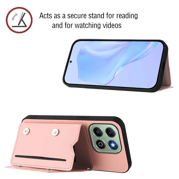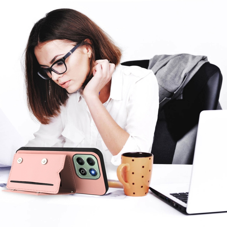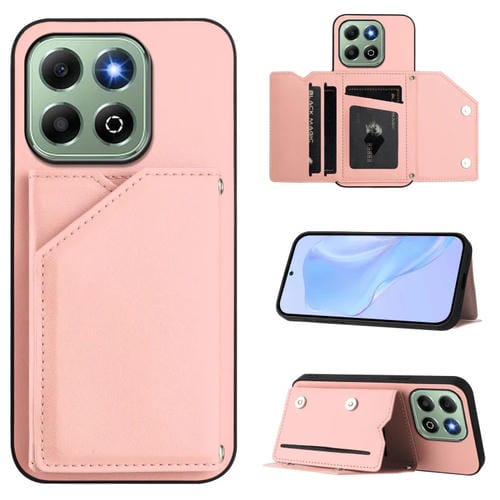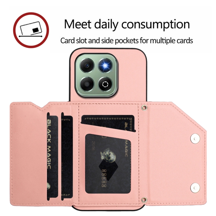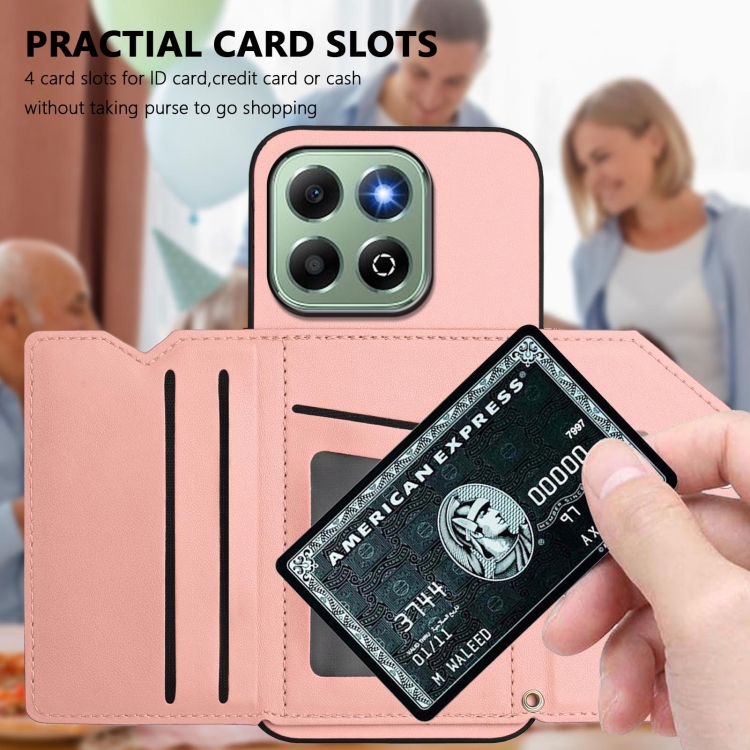 Funda para Teléfono Honor X6B Skin Feel con 4 Ranuras para Tarjetas y Correa (Rosa)