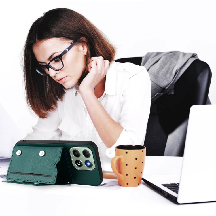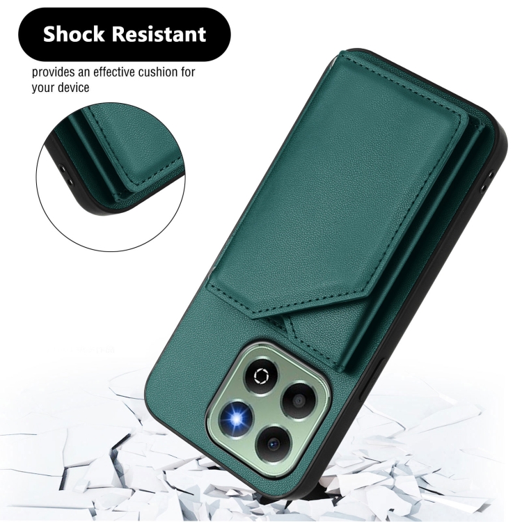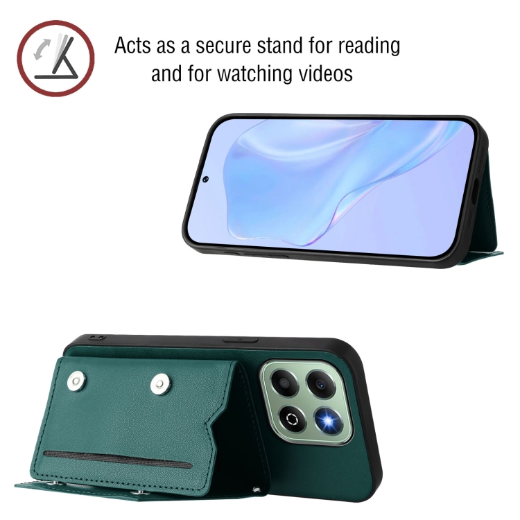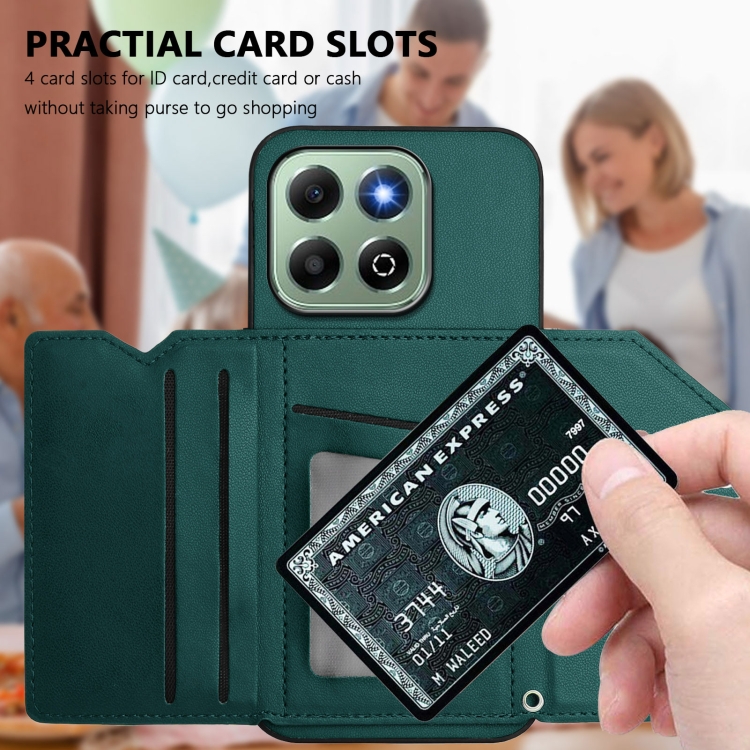 Funda para Teléfono Honor X6B Skin Feel con 4 Ranuras para Tarjetas y Correa (Verde)