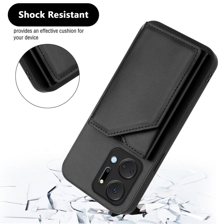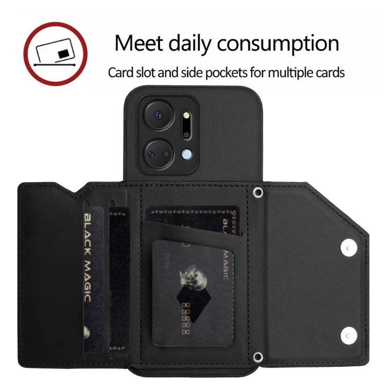 Funda para Teléfono Honor X7A Play7T con 4 Ranuras para Tarjetas y Correa para Muñeca (Negro)