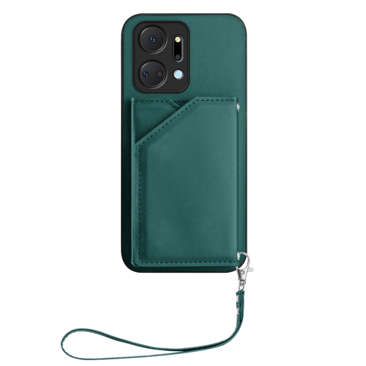 Funda para Teléfono Honor X7A Play7T con 4 Ranuras para Tarjetas y Correa para Muñeca (Verde)