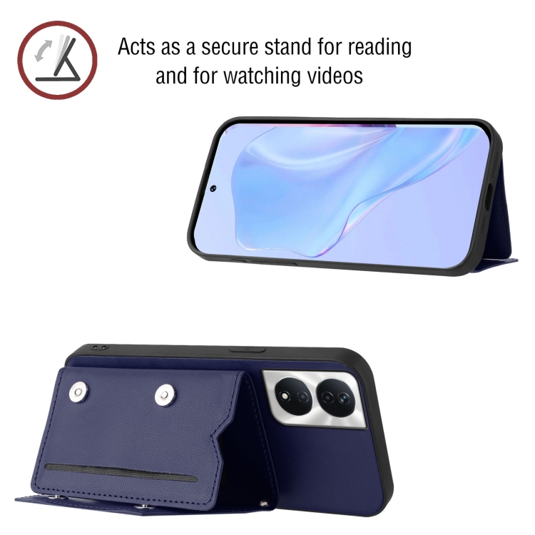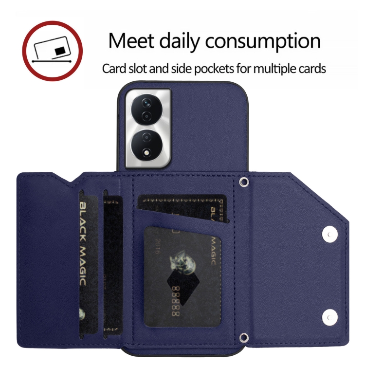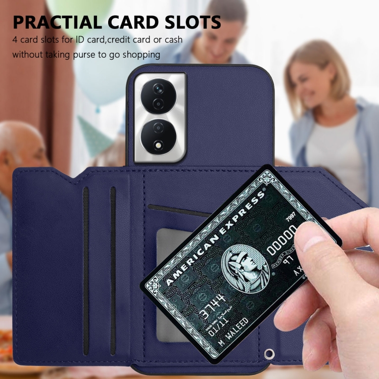 Funda para Honor X7B Play 8T con 4 Ranuras para Tarjetas y Correa para Muñeca (Azul)