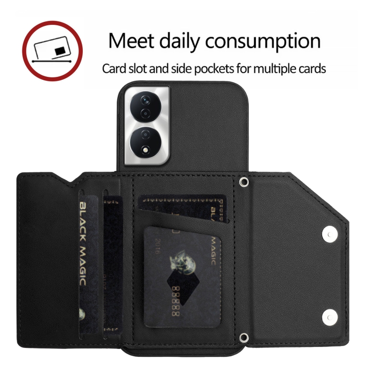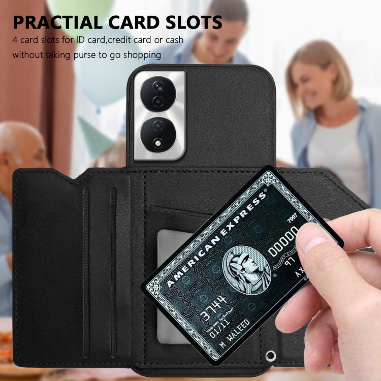 Funda para Teléfono Honor X7B Play 8T con 4 Ranuras para Tarjetas y Correa (Negro)