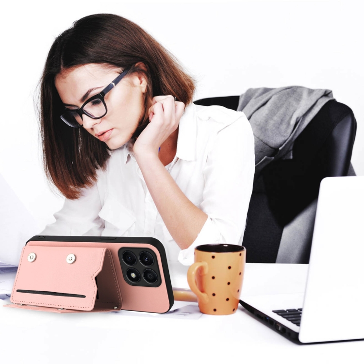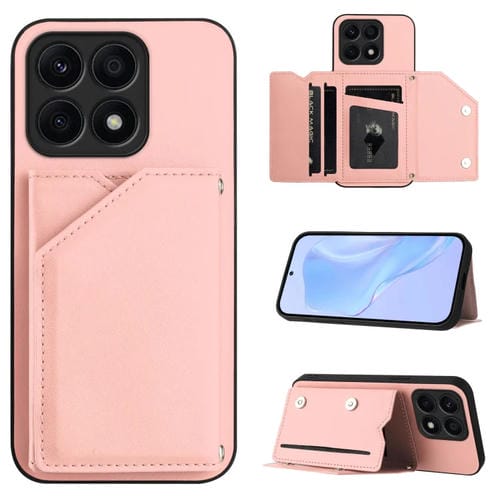 Funda para Teléfono Honor X8A Skin Feel con 4 Ranuras para Tarjetas y Correa (Rosa)
