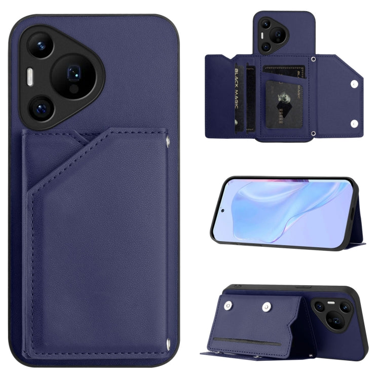 Funda para Teléfono Huawei Pura 70 Pro con 4 Ranuras para Tarjetas y Correa para Muñeca (Azul)