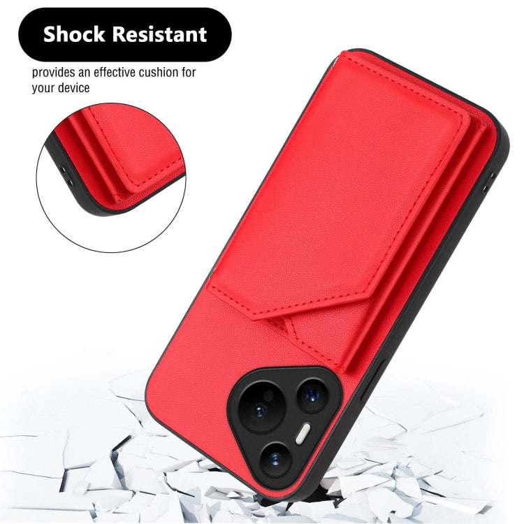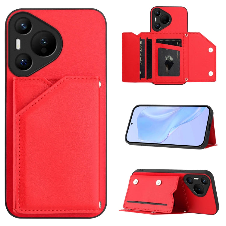 Funda para Teléfono Huawei Pura 70 Skin Feel con 4 Ranuras para Tarjetas y Correa (Rojo)