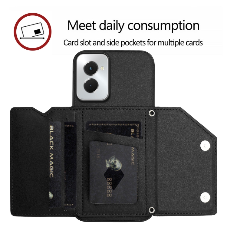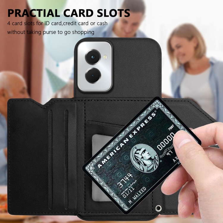 Funda para Motorola Moto G Play 2024 5G con 4 Ranuras para Tarjetas y Correa (Negro)