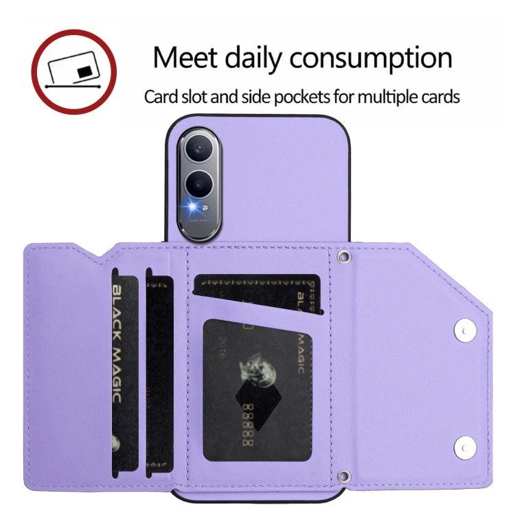 Funda para Teléfono OnePlus Nord Ce4 Lite 5G con 4 Ranuras para Tarjetas y Correa (Morado)