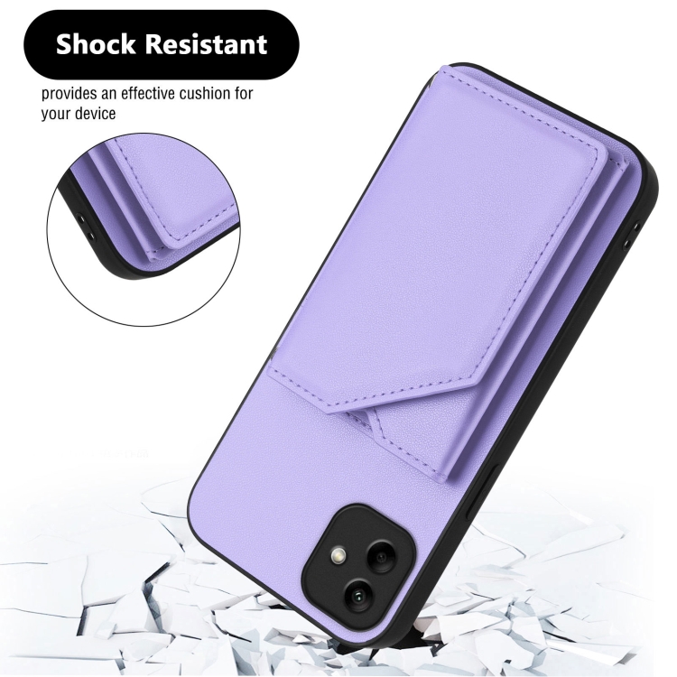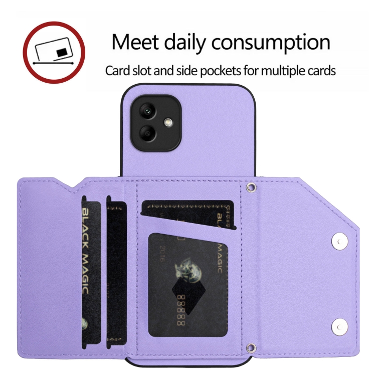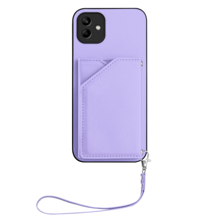 Funda para Teléfono Samsung Galaxy A04 4G con 4 Ranuras para Tarjetas y Correa para Muñeca (Morado)