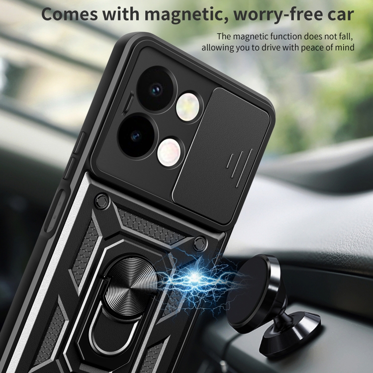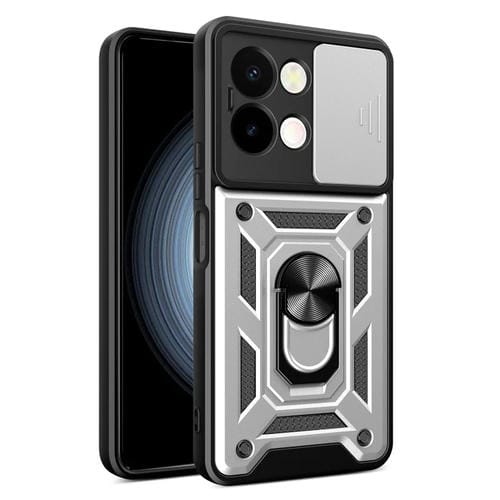 Funda para Teléfono con Diseño de Cámara Deslizante de TPU y PC para Vivo Y28 4G (Plateada)